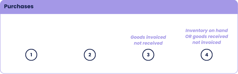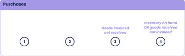 Purchases timing: PO creation has no financial impact; supplier invoice and goods receipt do—often at different times.