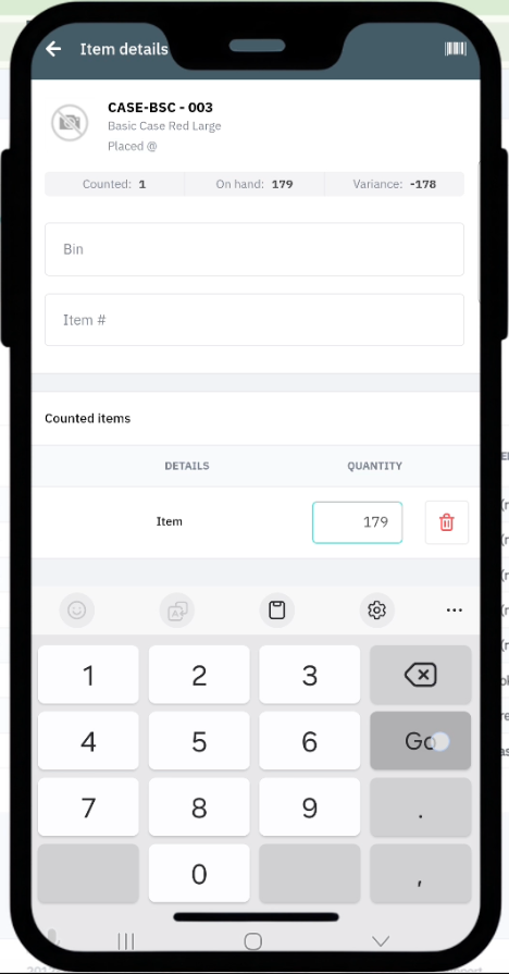 Now, go bin by bin, scanning or entering counts depending on SKU type.